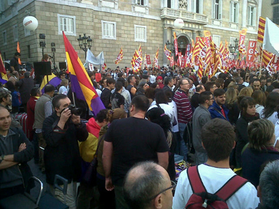 La Plaça Sant Jaume de Barcelona hasta arriba.