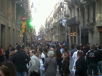 Manifestantes en la calle Ferran a la altura de la Rambla que no pudieron acceder a la Plaça Sant Jaume.