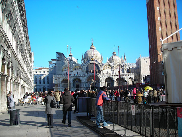 La perla de Venecia es la Piazza San Marco y la Basílica, de estilo bizantino, que da nombre a la plaza. En su pórtico podremos contemplar frescos de un colorido impresionante y un león alado, símbolo de origen chino que según se explica es el símbolo de protección de Venecia.